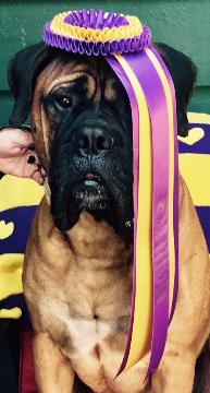 | Ch Showdown's BonTemps Beauty RN AXP AJP CA CS CGC TKN certified with Pet Partners |